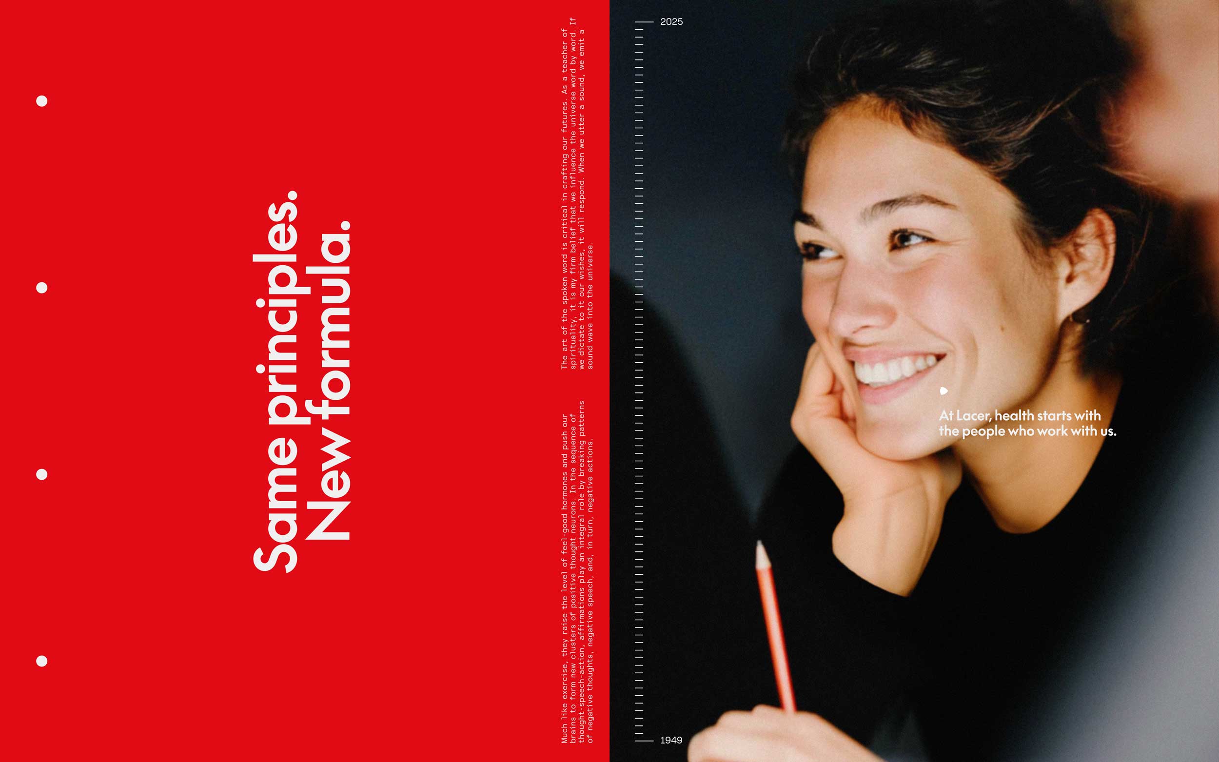 Evolución de la identidad y percepción de la marca Lacer para ampliar su significado: de la salud técnica a un relato de bienestar integral más contemporáneo.
